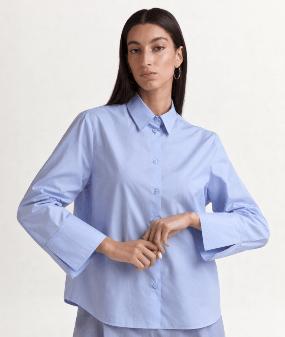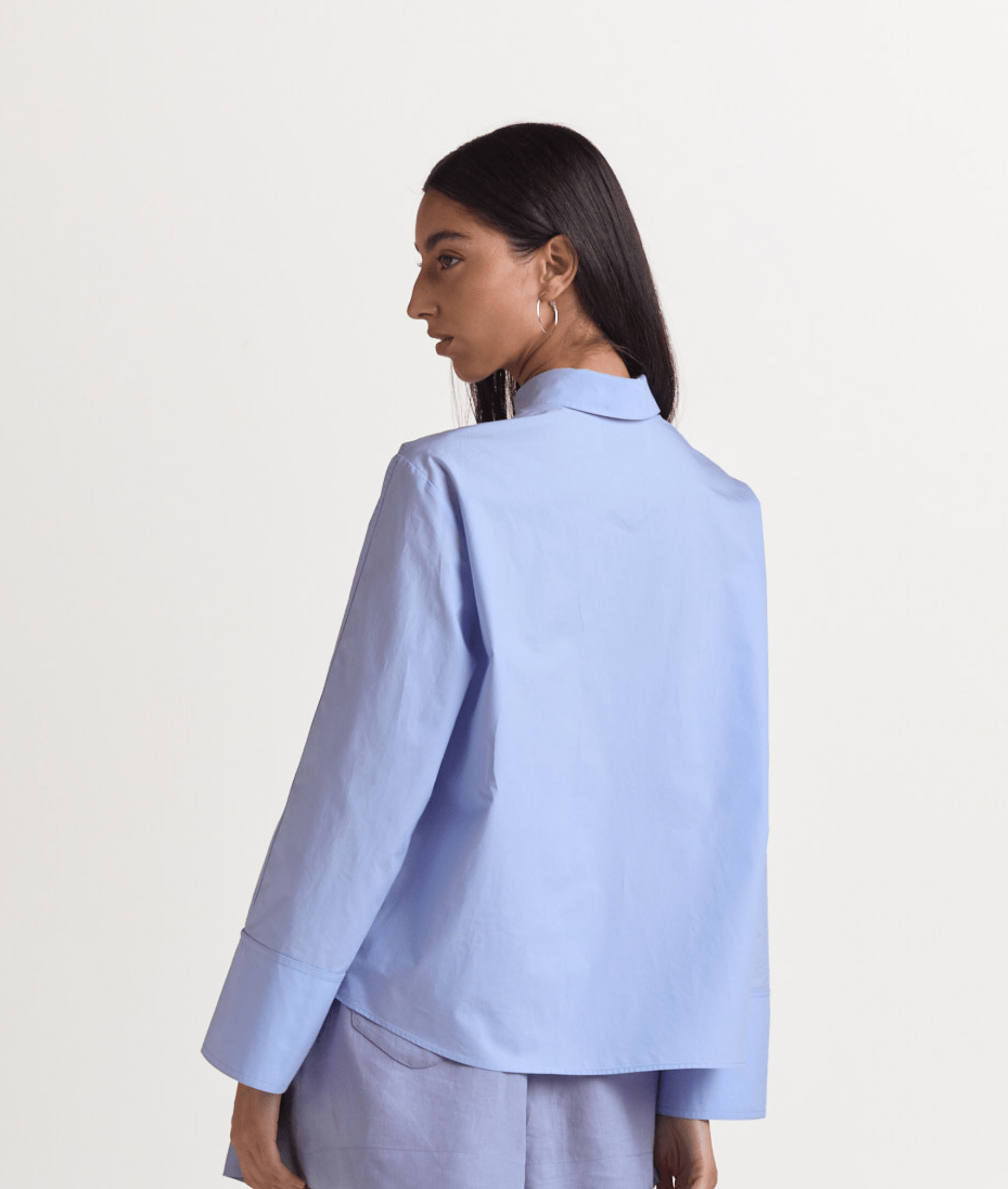 Il modello presenta una linea morbida e contemporanea, valorizzata da eleganti spacchi sui polsi che donano movimento e leggerezza alla manica, aggiungendo un dettaglio distintivo e femminile. La chiusura frontale è impreziosita da bottoni in madreperla naturale.