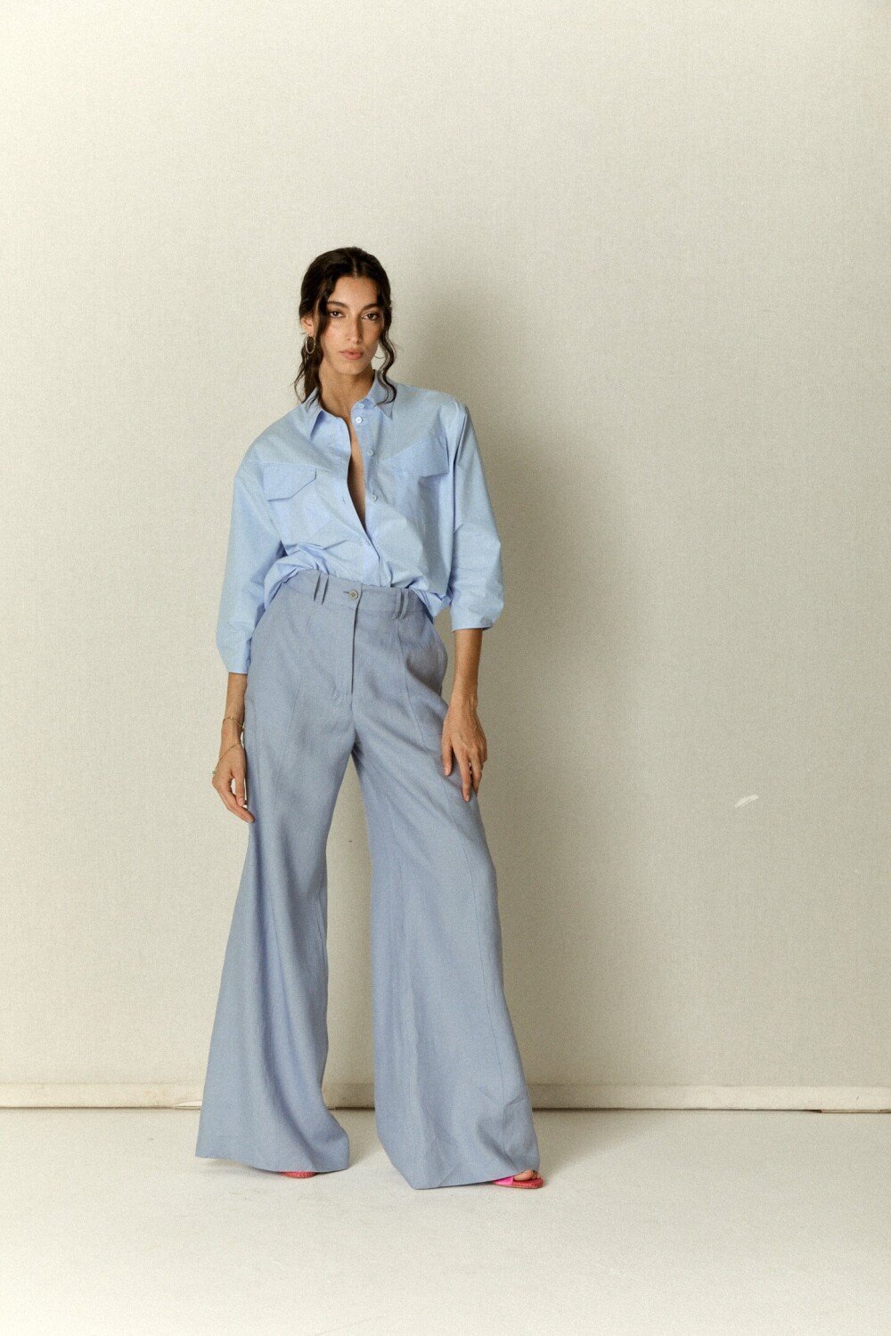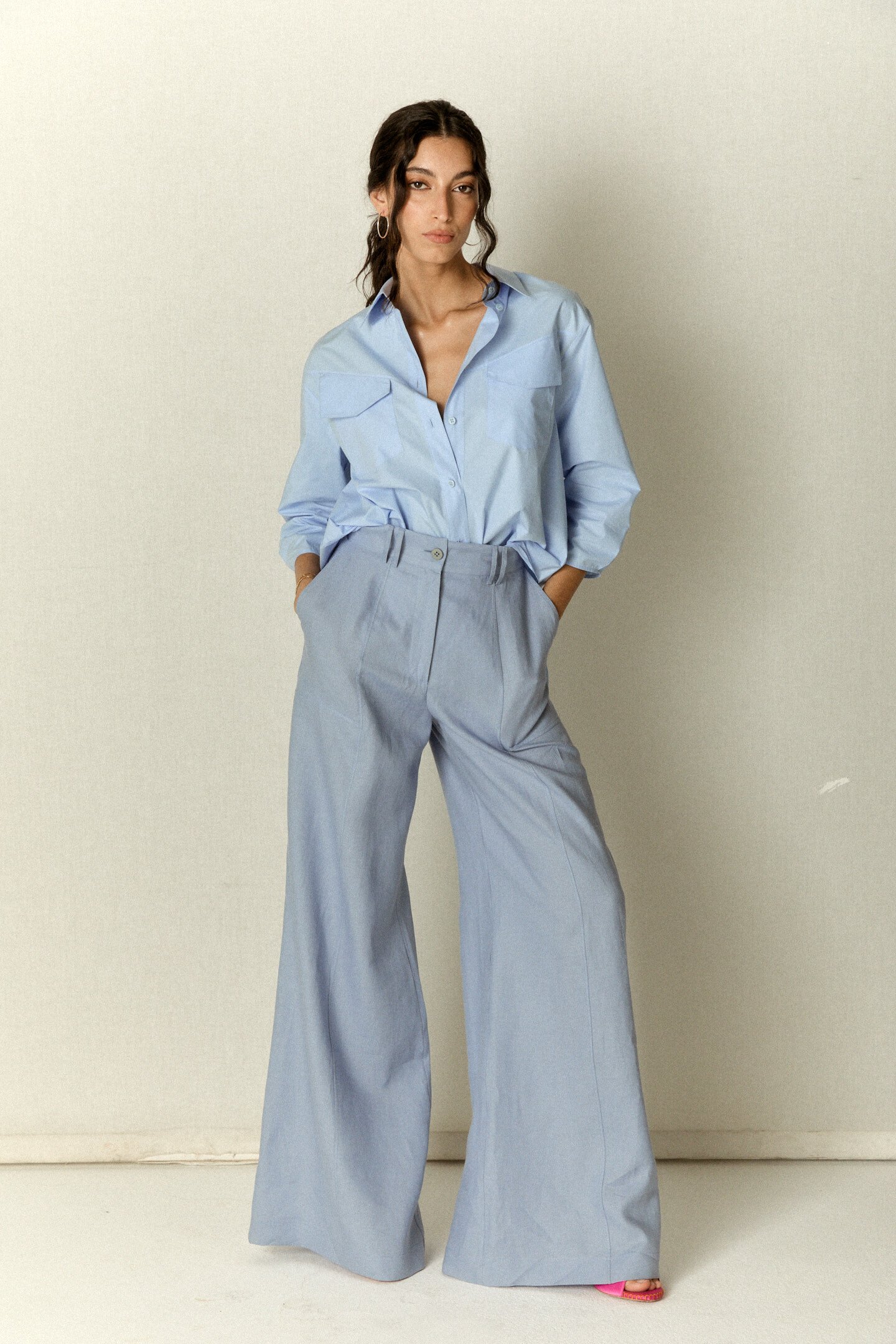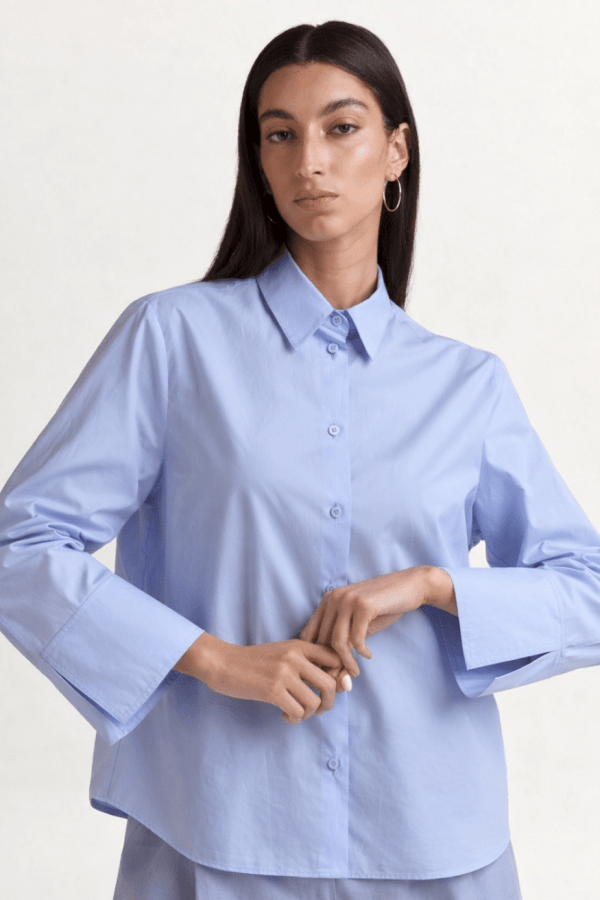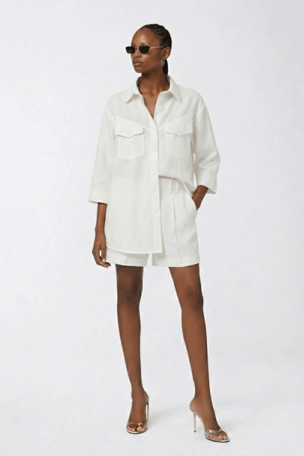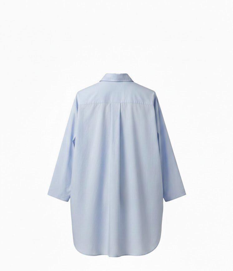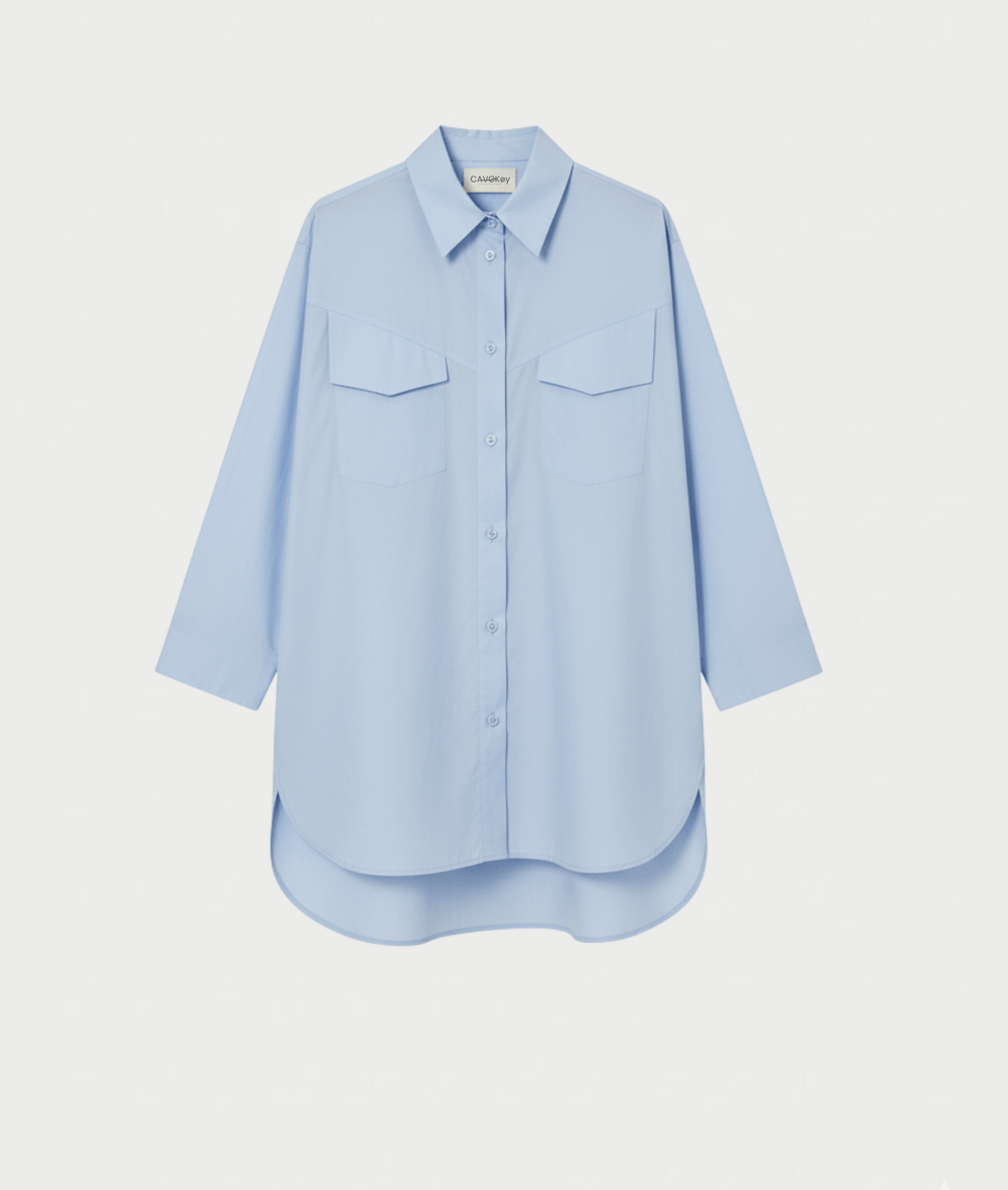 Camicia dalla vestibilità over realizzata in 100% cotone. Modello con collo classico e chiusura frontale con bottoni. Davanti caratterizzato da tasche applicate con patta sul petto. Fondo arrotondato con lunghezza maggiorata sul retro, per una linea fluida e contemporanea. Maniche a 3/4 con pieghe cucite all’orlo, che definiscono il volume e aggiungono un dettaglio sartoriale. Tessuto leggero e traspirante, ideale per un utilizzo quotidiano.