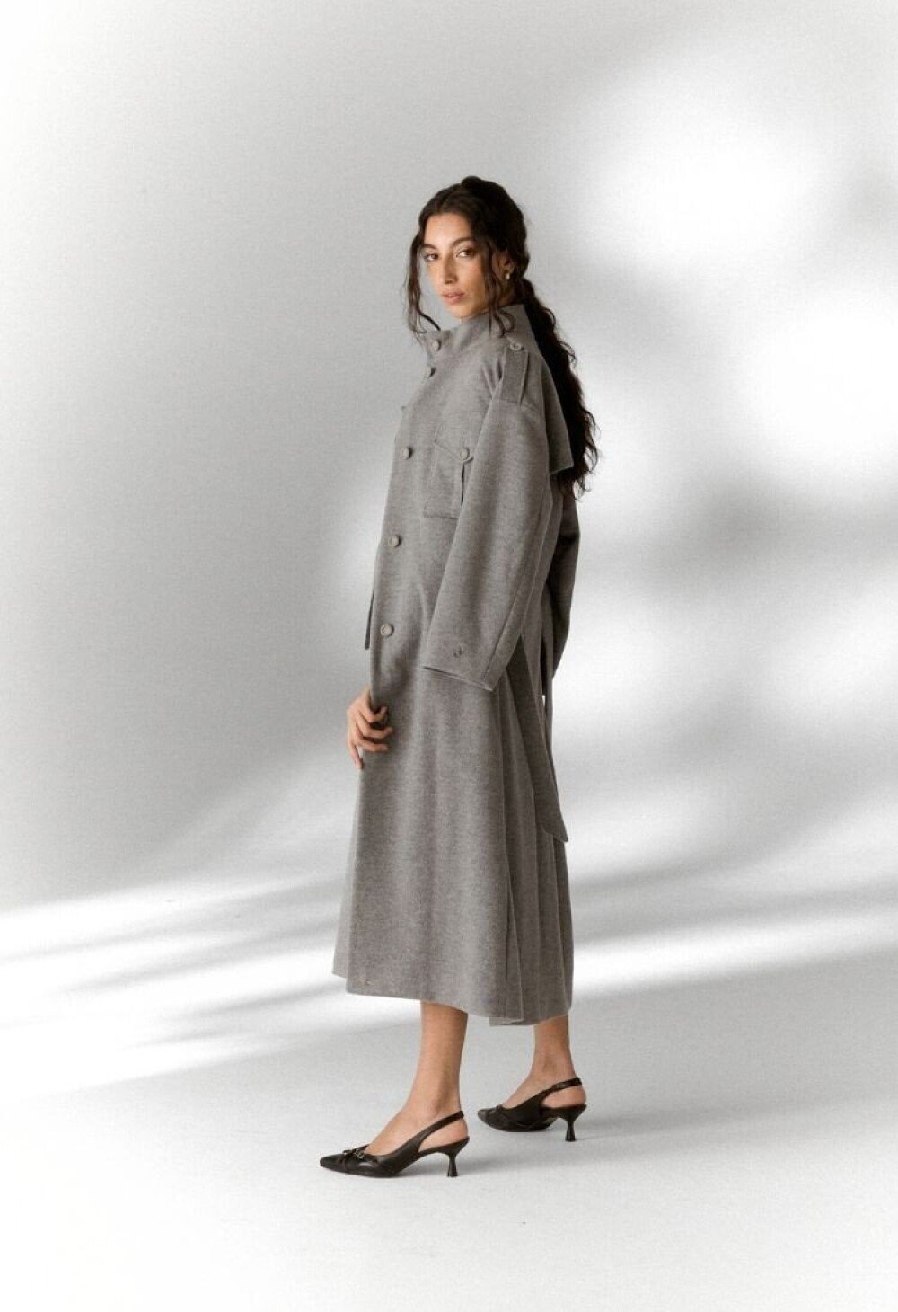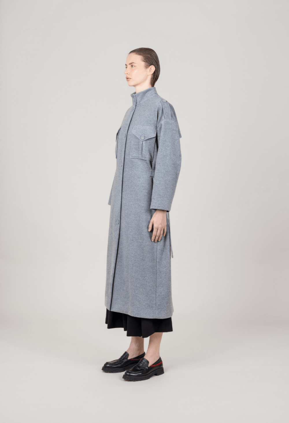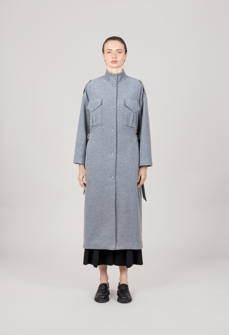 Cappotto lungo in misto lana dalla vestibilità regolare. collo alto e apertura centrale con bottoni 4 fori foderati.. Il cappotto caratterizzato da tasconi e regolatori in vita rende il tuo look iconico