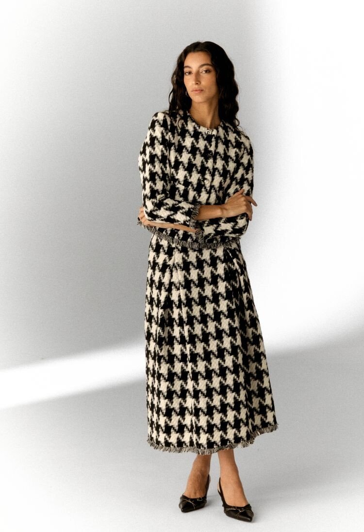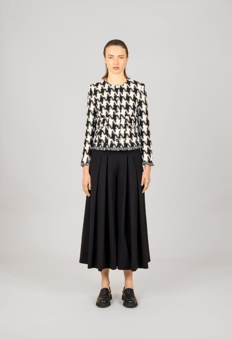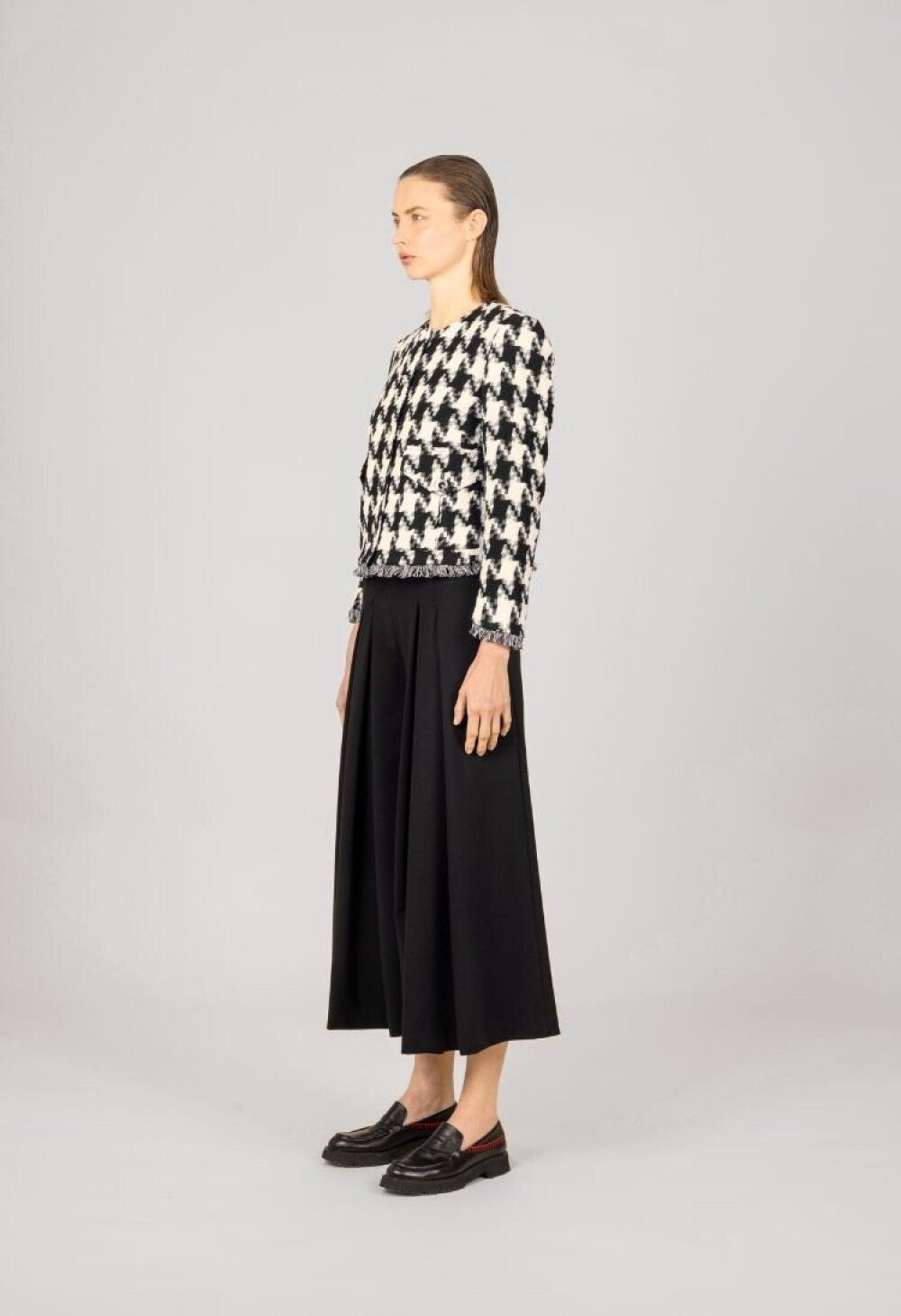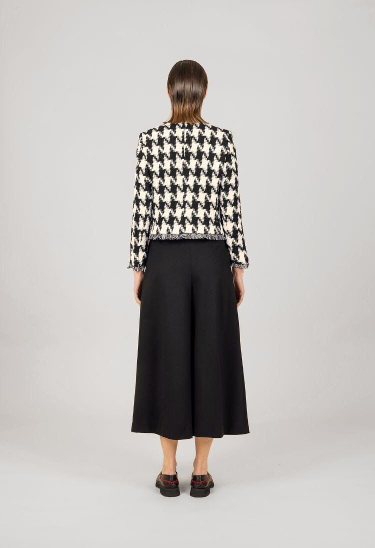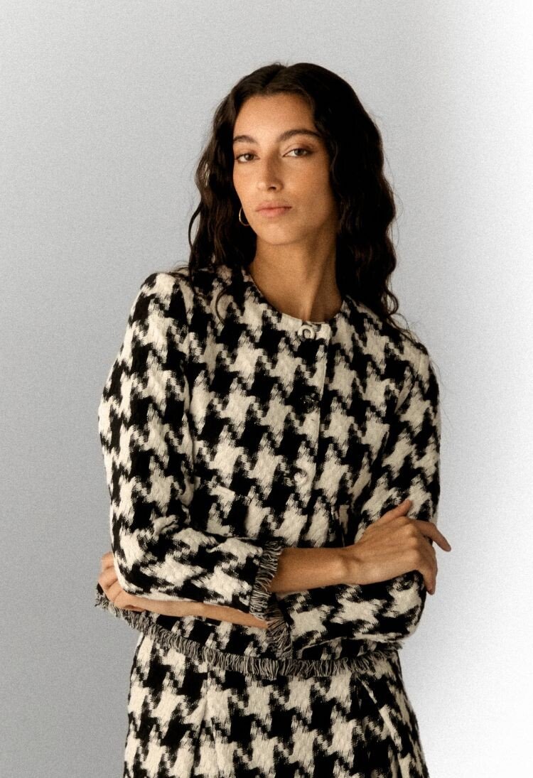Discover the elegance of our tailored short single-breasted jacket, perfect for those seeking a sophisticated and modern style. The long sleeves with frayed hems and the reimagined patch pockets add a unique touch to the piece. The shaped, covered button closure adds an extra detail of class, making this jacket ideal for any occasion. A versatile piece that combines refinement and practicality for an impeccable look.