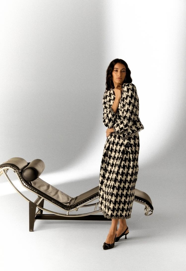 Discover the elegance of our tailored short single-breasted jacket, perfect for those seeking a sophisticated and modern style. The long sleeves with frayed hems and the reimagined patch pockets add a unique touch to the piece. The shaped, covered button closure adds an extra detail of class, making this jacket ideal for any occasion. A versatile piece that combines refinement and practicality for an impeccable look.