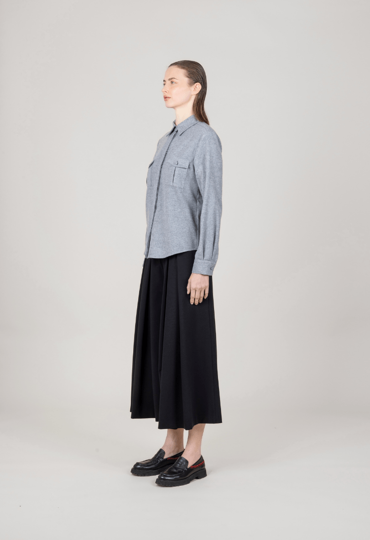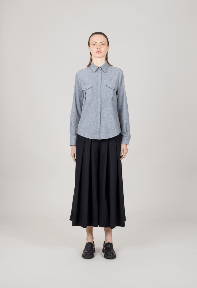 Discover the elegance of our tailored short single-breasted jacket, perfect for those seeking a sophisticated and modern style. The long sleeves with frayed hems and the reimagined patch pockets add a unique touch to the piece. The shaped, covered button closure adds an extra detail of class, making this jacket ideal for any occasion. A versatile piece that combines refinement and practicality for an impeccable look.