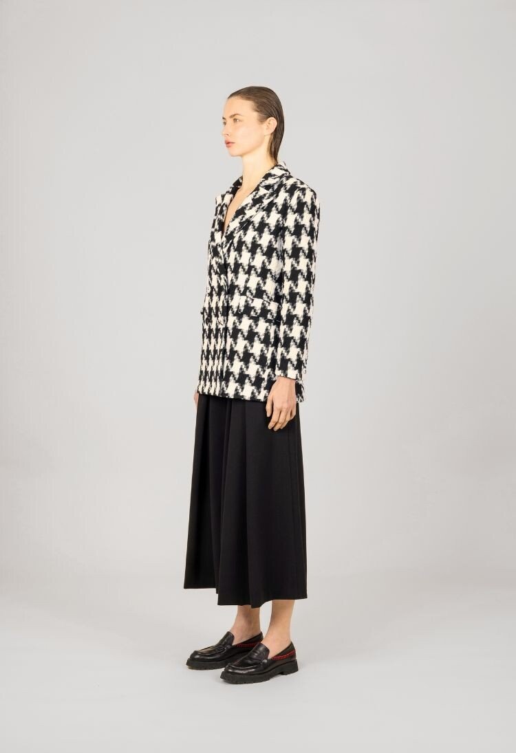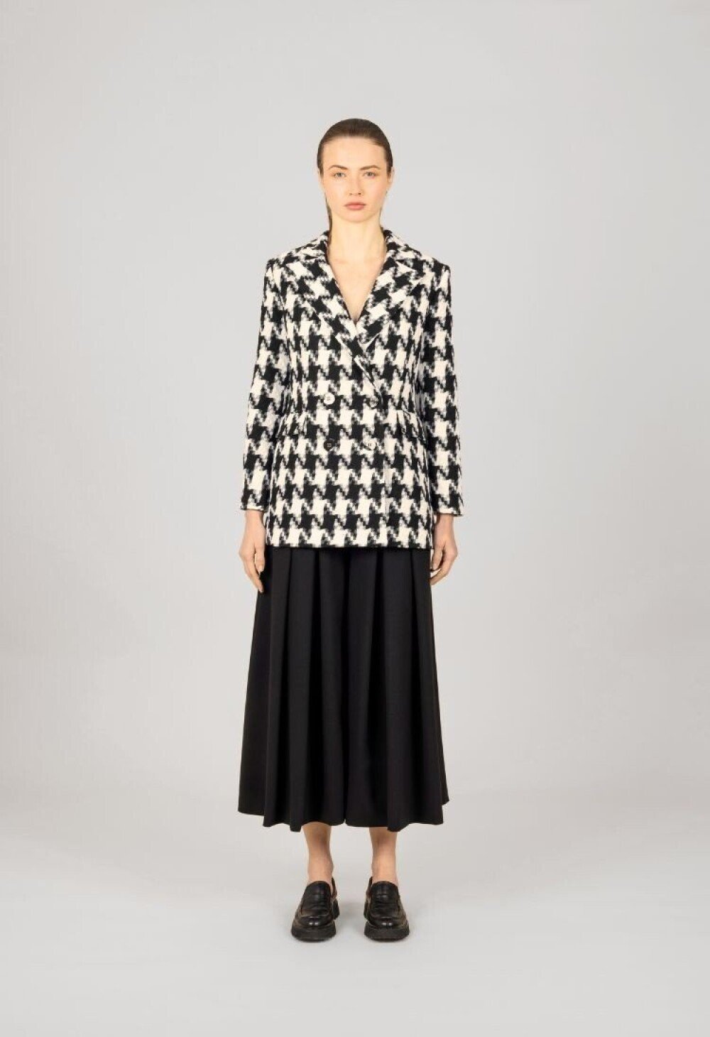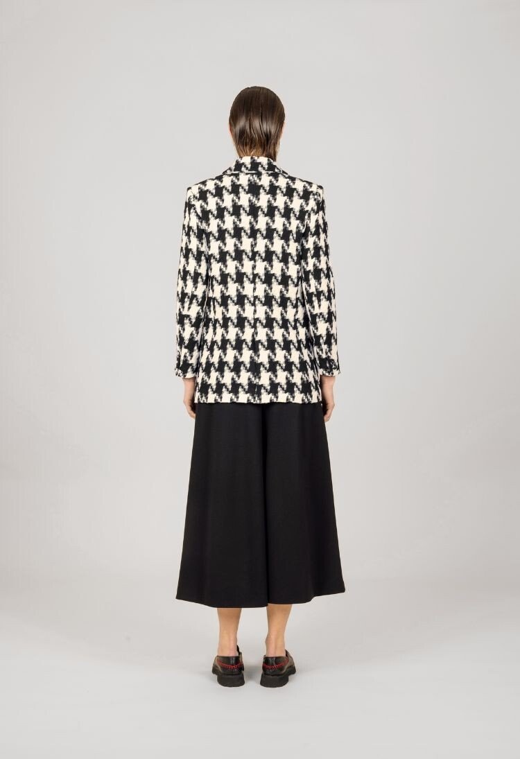 Discover the elegance of our tailored short single-breasted jacket, perfect for those seeking a sophisticated and modern style. The long sleeves with frayed hems and the reimagined patch pockets add a unique touch to the piece. The shaped, covered button closure adds an extra detail of class, making this jacket ideal for any occasion. A versatile piece that combines refinement and practicality for an impeccable look.