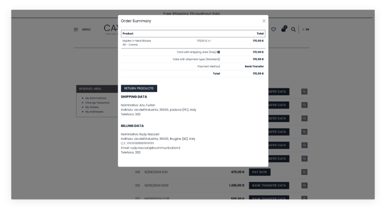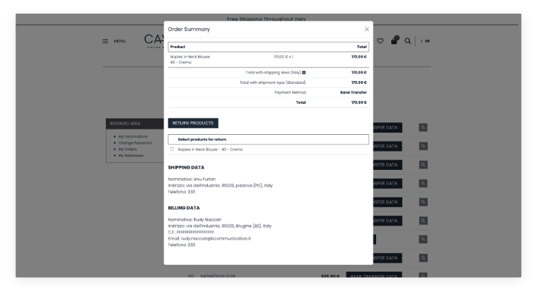 By clicking the "Return Products" button, you will be able to view the detailed list of the products you purchased. You will then need to select the product(s) you wish to return.