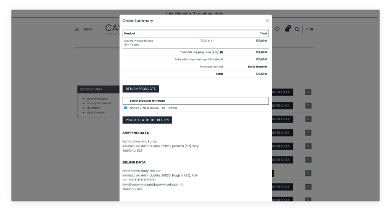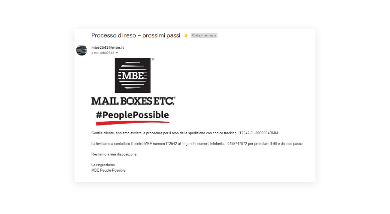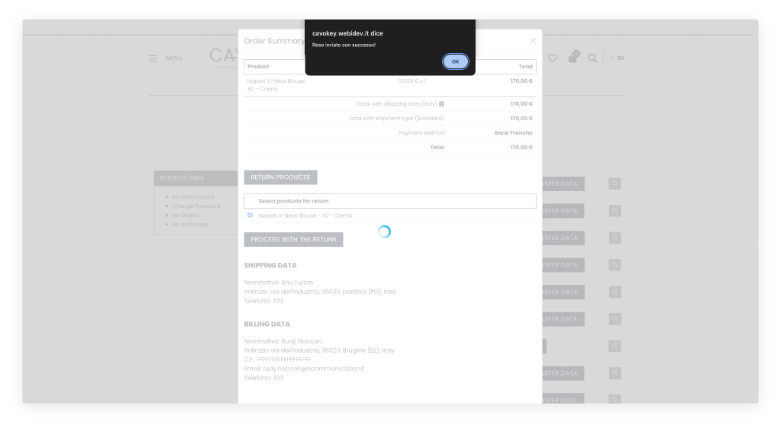 You will then receive a confirmation email for the return request with a summary of the selected products and instructions on how to proceed with dropping off your package at the indicated drop-off point.
