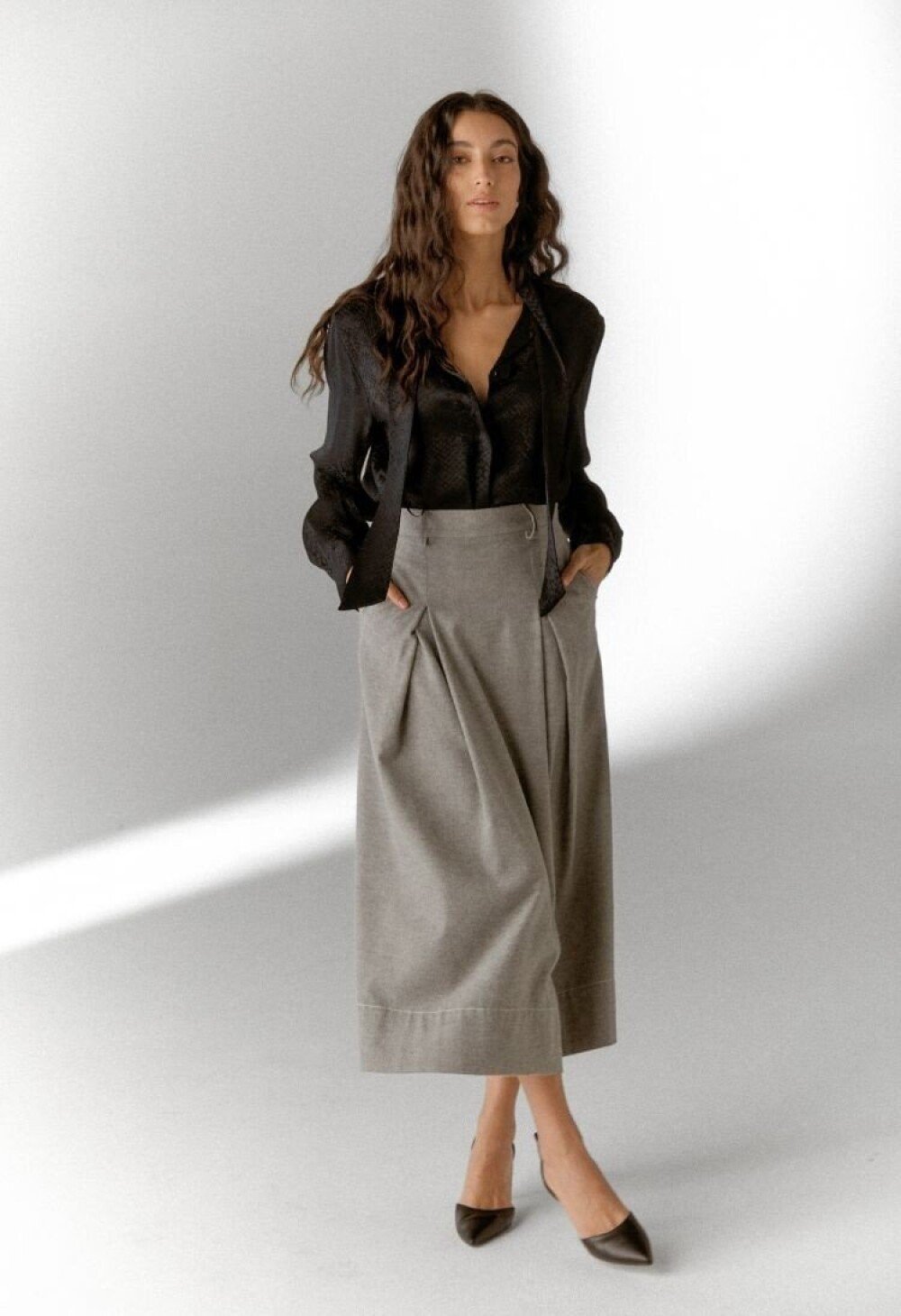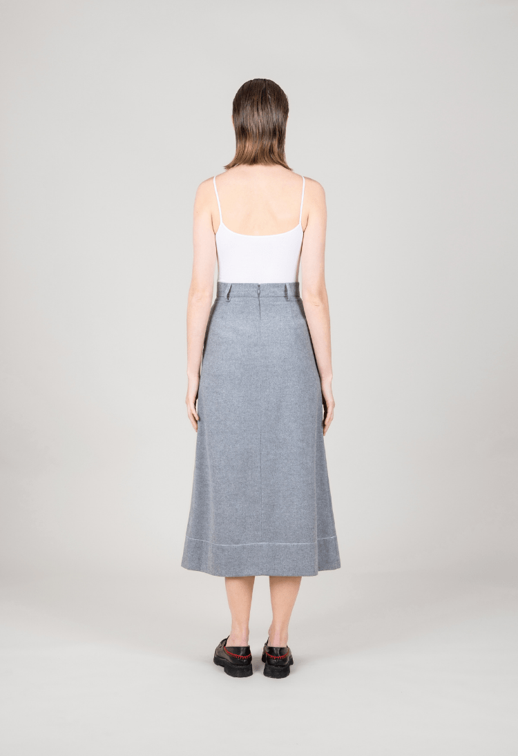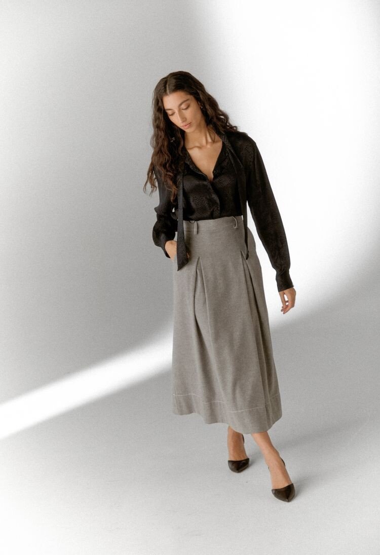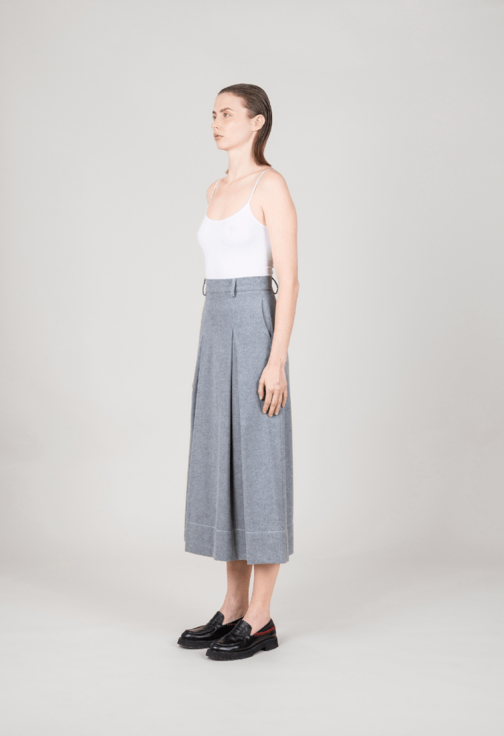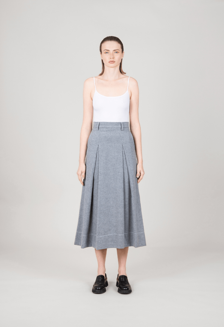 Gonna a pieghe in misto caldo cotone. orlo alto ribatutto in contrasto e tasche laterali in cucitura.